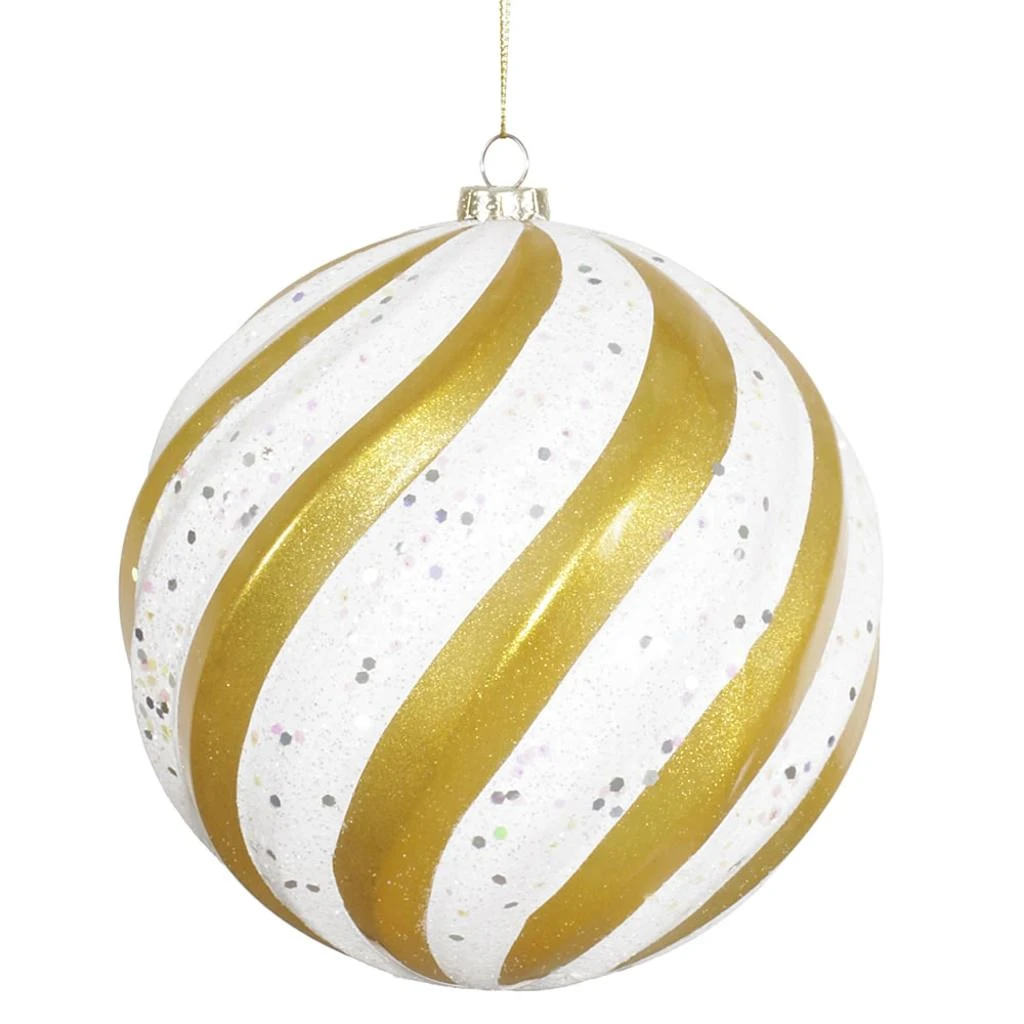 | Manufacturer Description: | 6″ Gold-Wht Candy-Glitter Swirl Ball (M112075) |